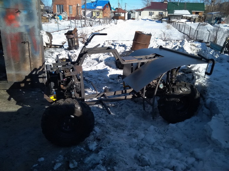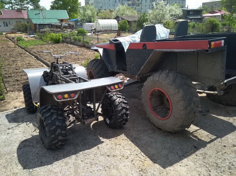 На форуме в последнее время совсем нет новых проектов. Хочу поделиться своим. Сразу оговорюсь, что процесс строительства будет описан в прошлом времени, т.к. квалрик уже построен и вовсю эксплуатируется. Итак, в 2014 был построен первый квадрик на базе Оки, как и у многих. Вот тема http://buggy-plans.ru/forum/viewtopic.p ... 39#p168939. Довольно быстро был продан, т.к. захотелось чего-то иного. Потом был вездеход, упоминания о нем тоже где-то здесь были. Хороший был вездеход... Но хотелось квадрик, да и батя к первому проекту очень проникся, просил повторить. Короче вездеход был тоже продан. Были мысли и попытки построит аналог Сокола, но не срослось тогда со временем, работой да и хренего знает с чем еще. Короче в 2018 году в январе начачт квадрик. Бюджет на начальном этапе практически не лимитирован был. Да и в процессе строительства особо не экономил. ТЗ было следующее в порядке убывания значимости: отсутствие элементов российского производства, квадрорезина, максимально простая конструкция, минимальный вес, минимум кастомных деталей, подверженных наибольшему износу. Сверх проходимость во главу угла не ставилась, т.к. делалось все для удовольствия, ну и некоторой помощи по хозяйству, к тому же растет пацан, чтоб приобщался к техническому творчеству.