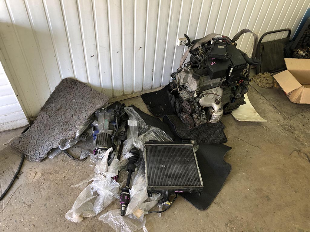Был приобретен двигатель от Nissan Moco 21 кузов со Владика. Вместе с ним приехали привода от этой же машины, коробка автомат и один редуктор Mitsubishi Outlander.