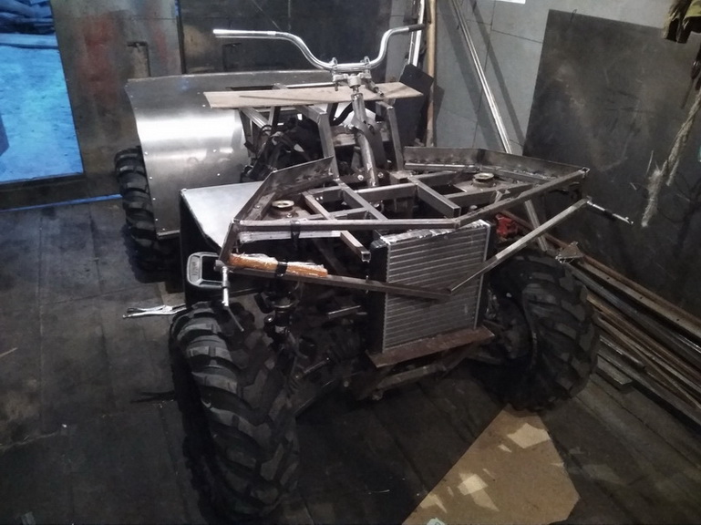 На форуме в последнее время совсем нет новых проектов. Хочу поделиться своим. Сразу оговорюсь, что процесс строительства будет описан в прошлом времени, т.к. квалрик уже построен и вовсю эксплуатируется. Итак, в 2014 был построен первый квадрик на базе Оки, как и у многих. Вот тема http://buggy-plans.ru/forum/viewtopic.p ... 39#p168939. Довольно быстро был продан, т.к. захотелось чего-то иного. Потом был вездеход, упоминания о нем тоже где-то здесь были. Хороший был вездеход... Но хотелось квадрик, да и батя к первому проекту очень проникся, просил повторить. Короче вездеход был тоже продан. Были мысли и попытки построит аналог Сокола, но не срослось тогда со временем, работой да и хренего знает с чем еще. Короче в 2018 году в январе начачт квадрик. Бюджет на начальном этапе практически не лимитирован был. Да и в процессе строительства особо не экономил. ТЗ было следующее в порядке убывания значимости: отсутствие элементов российского производства, квадрорезина, максимально простая конструкция, минимальный вес, минимум кастомных деталей, подверженных наибольшему износу. Сверх проходимость во главу угла не ставилась, т.к. делалось все для удовольствия, ну и некоторой помощи по хозяйству, к тому же растет пацан, чтоб приобщался к техническому творчеству.